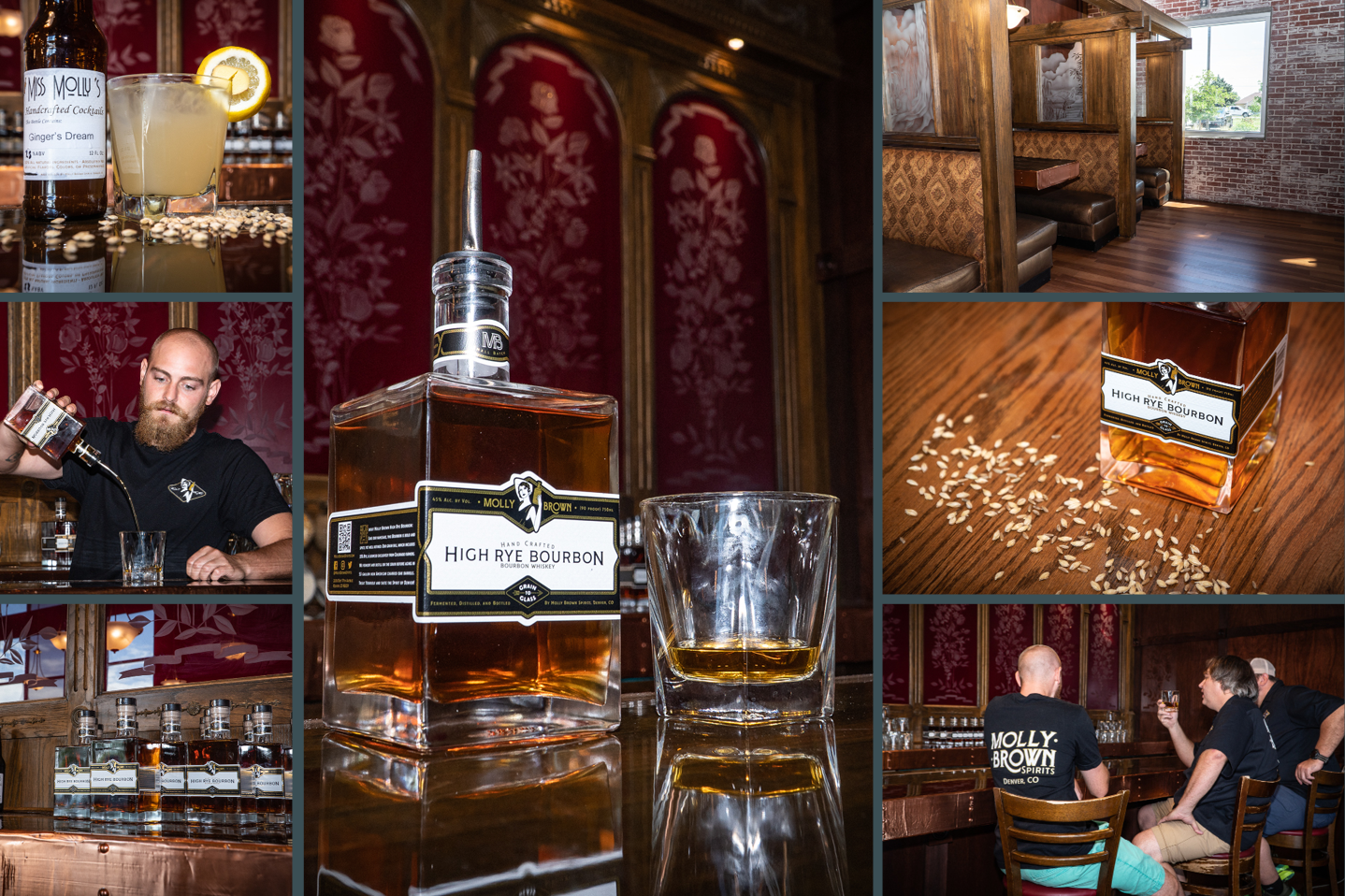 King Lion paired Molly Brown Spirits with one of our talent photographers to produce various images for social media, web, and print media. We captured the speakeasy vibes created by Molly Brown's unique lighting, interior, and furniture setup. Additionally, we shot some flattering product images for their Bourbon, High Rye Bourbon, and to-go bottled cocktails.